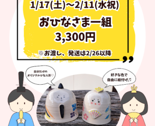陶芸教室1月17日(土)~2月11日(水祝)ひな人形 絵付体験