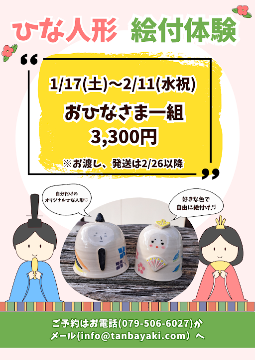 丹波焼オリジナルのひな人形にカラフルな絵具で思いを込めて作成してみませんか?