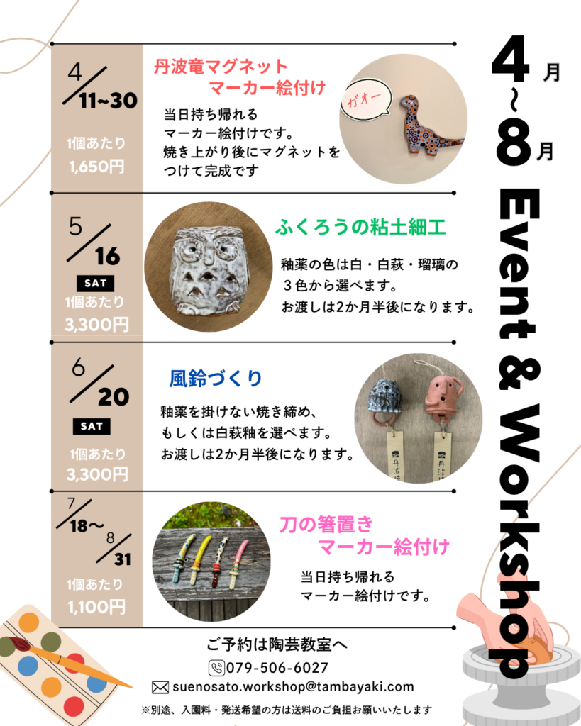 参加ご希望の方は陶芸教室までお電話ください。当日も受付可
