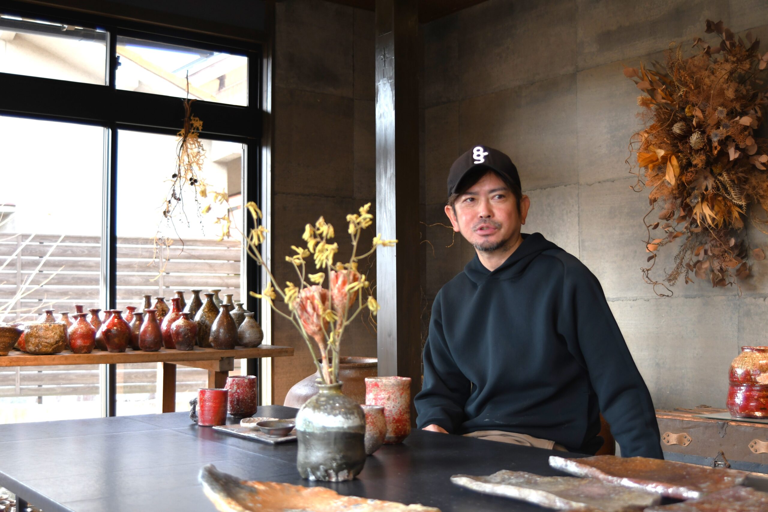 Tanbungama109では、看板犬、ビションフリーゼのももちゃんが皆様をお迎えしています。真っ白で綿菓子のようなももちゃんは、家族に癒しを与えてくれる大切な存在です。雅文さんの趣味は、一日の終わりに楽しむ晩酌。しかし、それは単なる休息の時間ではありません。「自分が作った器で実際にお酒を吞み、漏れがないかを確認する。それも大切な仕事の一部です」たとえ微細な隙間から漏れがあったとしても、日本酒や焼酎の細かい粒子が少しずつ隙間に埋まっていくことで、次第に漏れが止まっていく。実生活で使い込むことで器が育っていく過程を、自らも楽しみながら確かめています。
