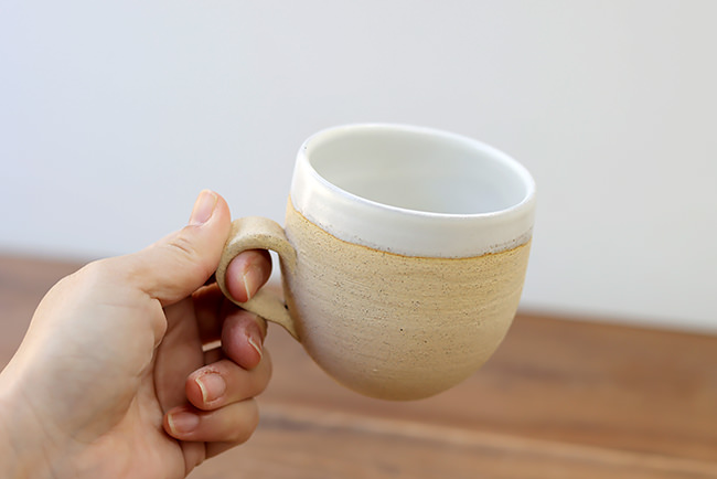 ツートンの優しい表情と、柔らかい手触りが心もほっこりさせてくれるマグカップです。